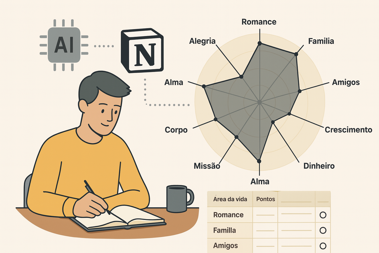Essa ferramenta é poderosa porque nos obriga a olhar para todas as áreas da vida — saúde, carreira, finanças, família, espiritualidade, lazer — e perceber onde estamos equilibrados e onde estamos deixando buracos.
